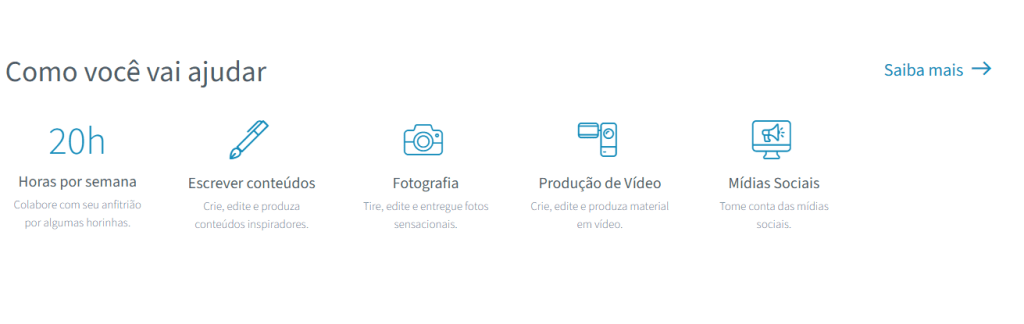 Aqui está um exemplo do que você precisará contribuir em uma vaga de voluntariado na plataforma! Esses detalhes são super importantes para você entender o que é esperado e como se preparar para a sua experiência. Transparência total para uma viagem sem surpresas!