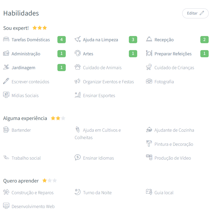Algumas funções podem exigir um pouco de experiência, mas a maioria das vagas são abertas para iniciantes. Além disso, ao longo da sua jornada, você vai adquirir muitas habilidades novas que vão agregar valor às suas próximas experiências de voluntariado. O importante é estar disposto a aprender e compartilhar suas habilidades com os anfitriões.