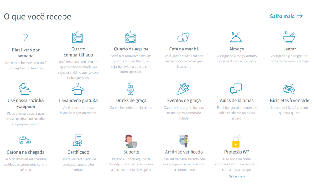 A Worldpackers oferece a Proteção WP, um benefício essencial para sua tranquilidade durante a experiência de voluntariado. Caso você tenha que interromper a sua experiência por algum motivo, como a diferença entre o que foi combinado e a realidade da vaga, a equipe da plataforma vai te apoiar para encontrar um novo anfitrião e garantir que você continue a sua jornada.